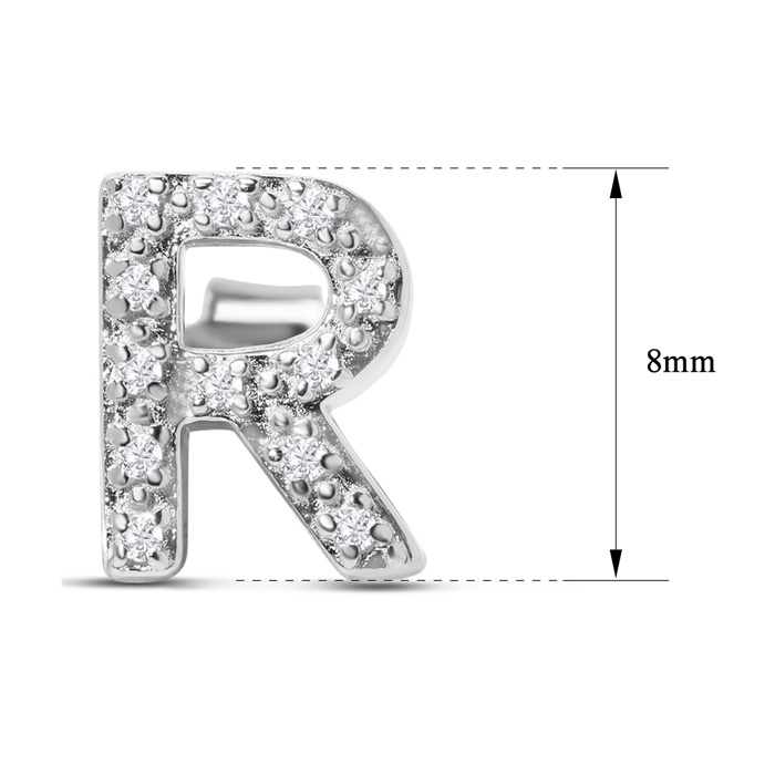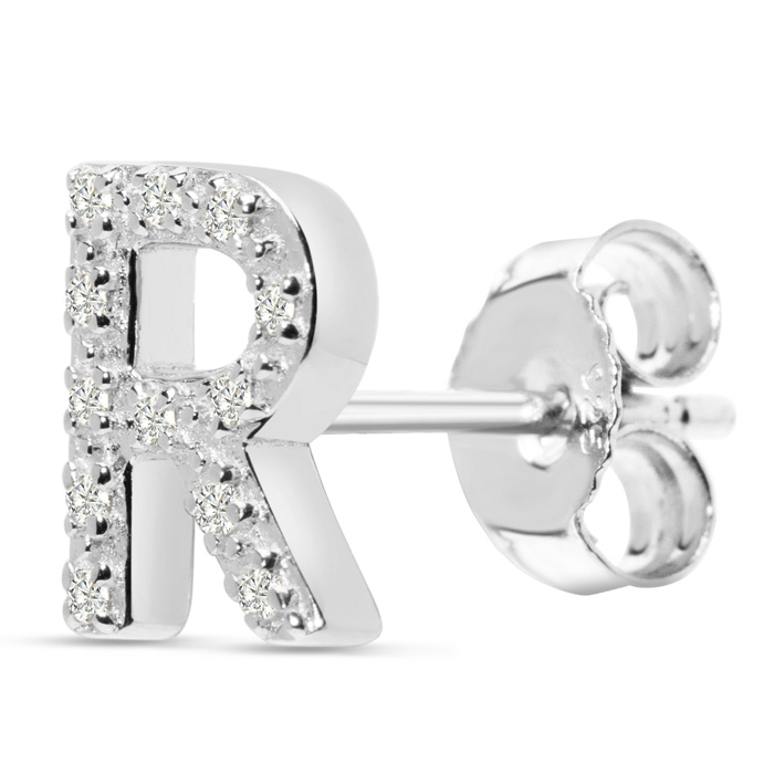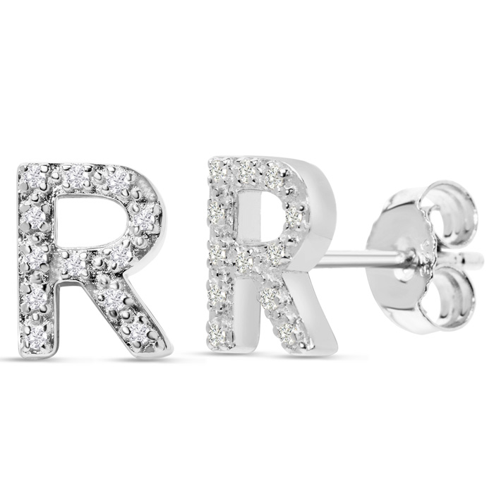 1/10 Carat Natural Diamond Letter R Initial Earrings In Solid Sterling Silver