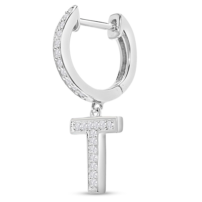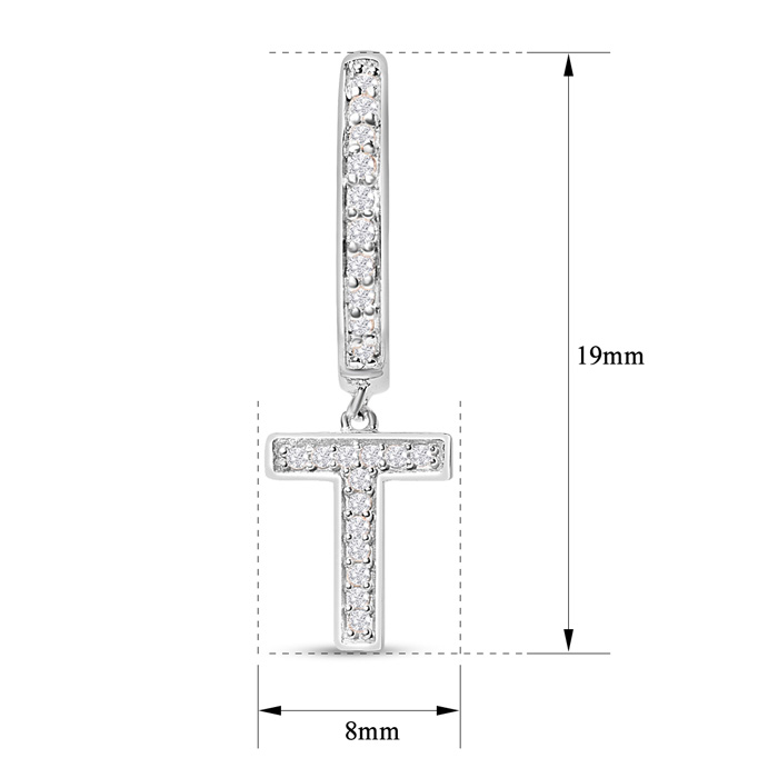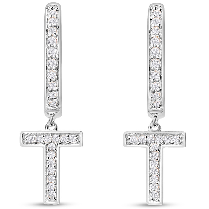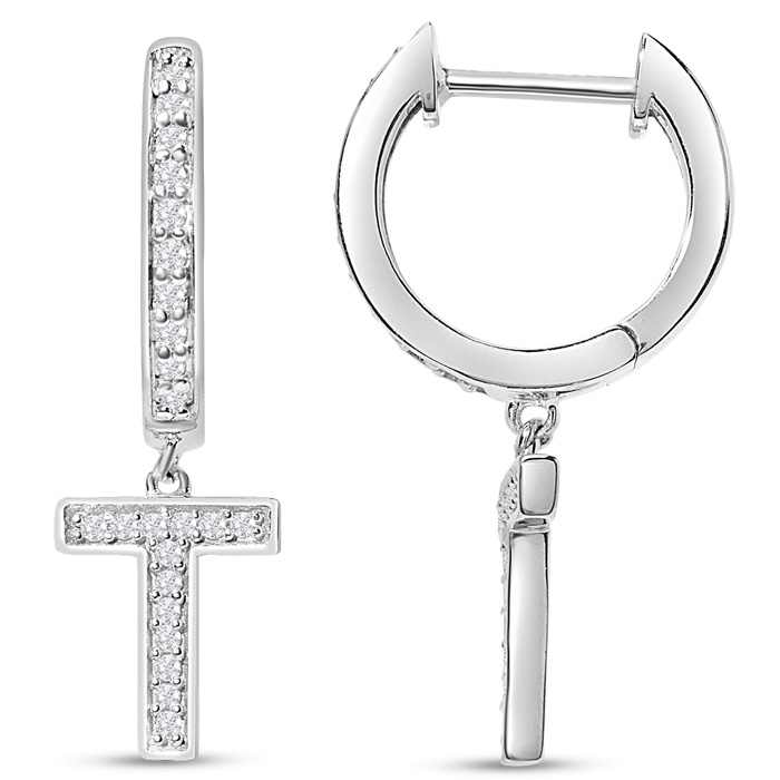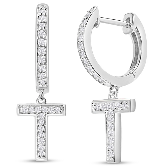 Sterling Silver Letter T Initial Earrings, Diamond Drop Earrings – Personalized Initial Jewelry