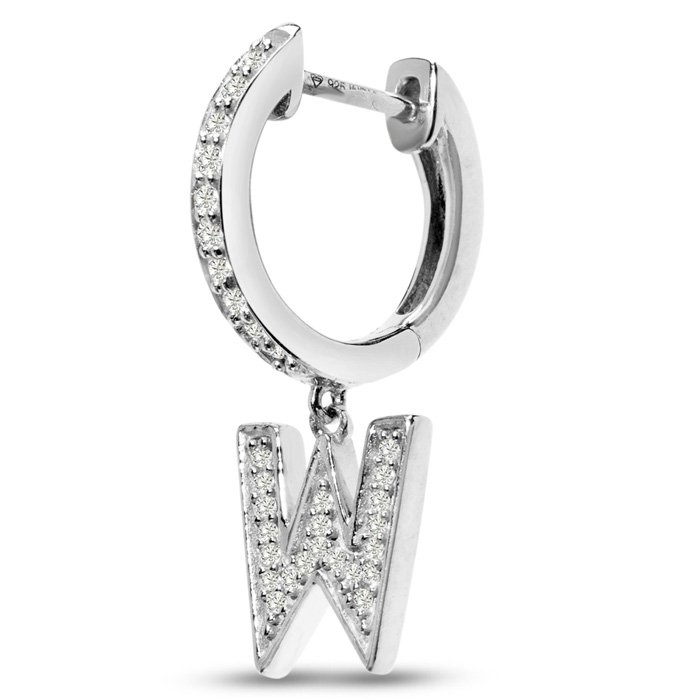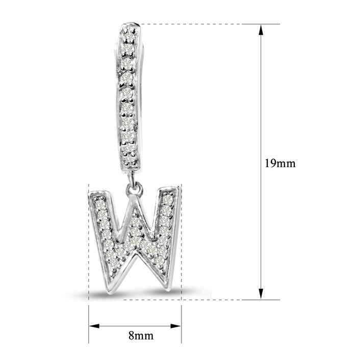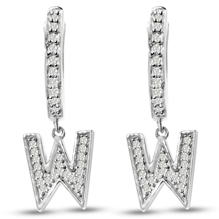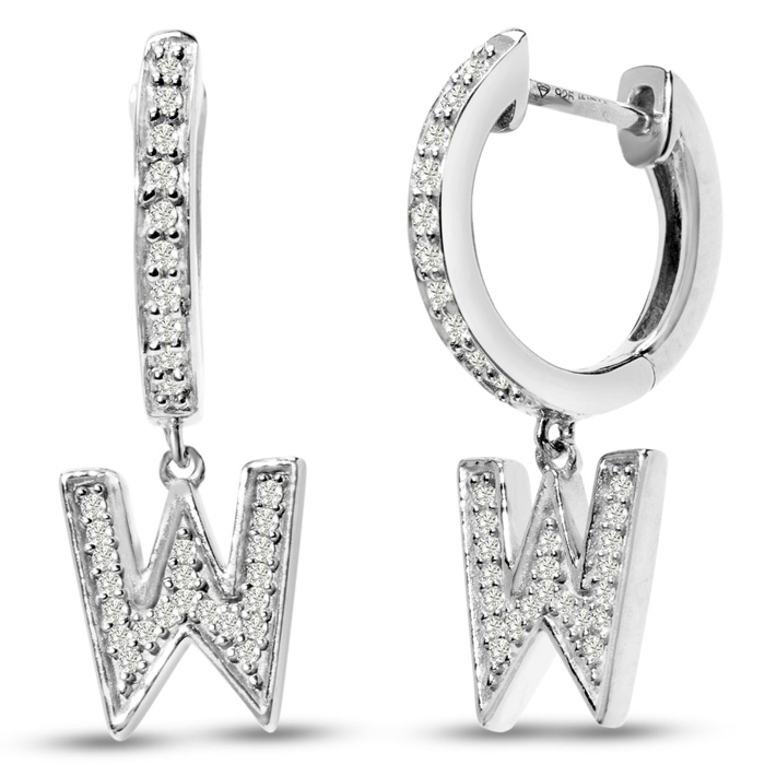 Sterling Silver Letter W Initial Earrings, Diamond Drop Earrings – Personalized Initial Jewelry