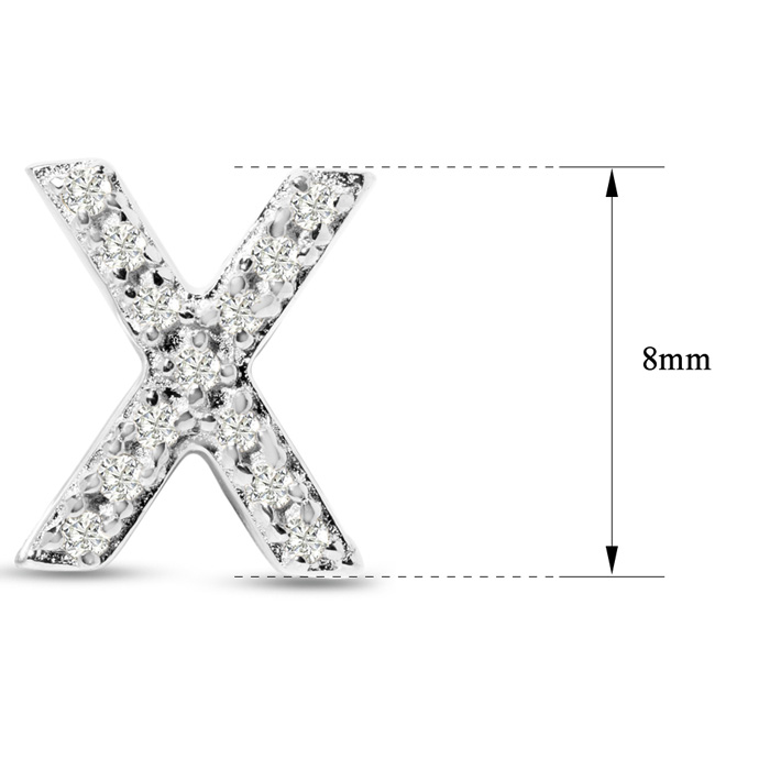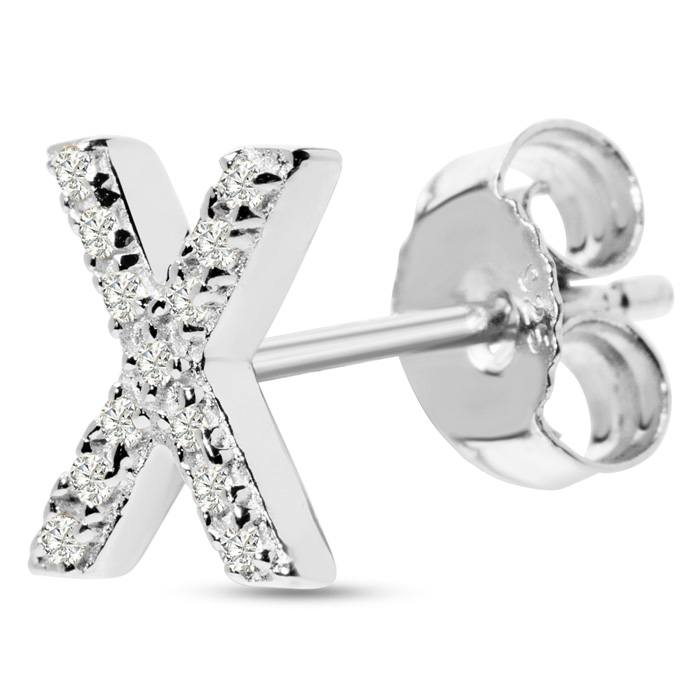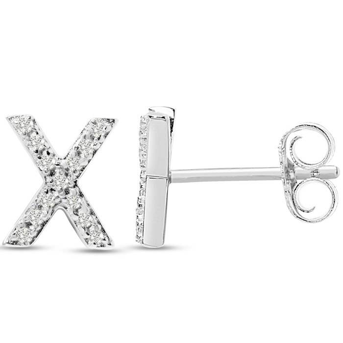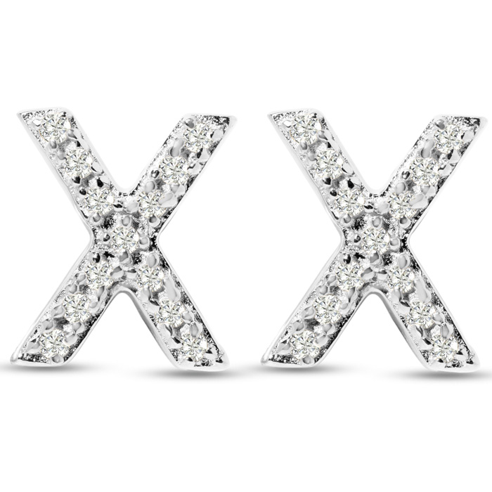 1/10 Carat Natural Diamond Letter X Initial Earrings In Solid Sterling Silver