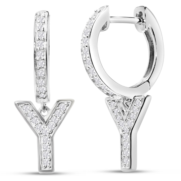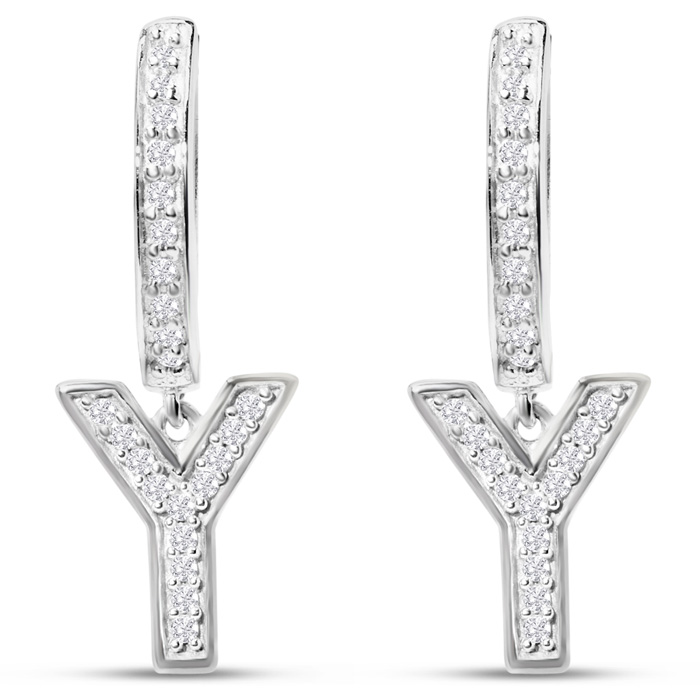 Sterling Silver Letter Y Initial Earrings, Diamond Drop Earrings – Personalized Initial Jewelry