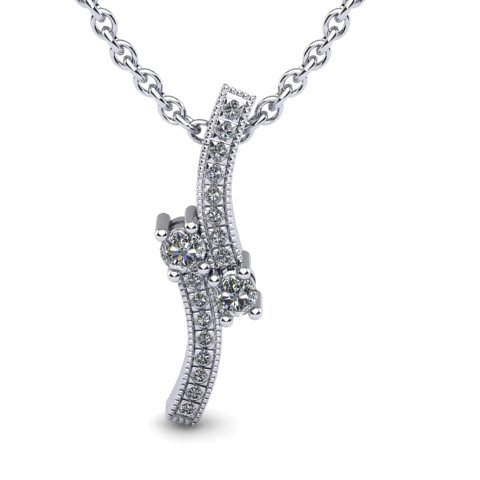 1/3 Carat Natural Two Stone Two Diamond Swirl Necklace In 14K White Gold