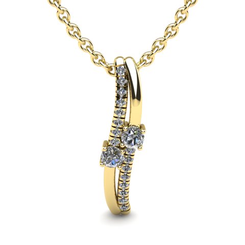 1/3 Carat Natural Two Stone Two Diamond Curve Necklace In 14K Yellow Gold