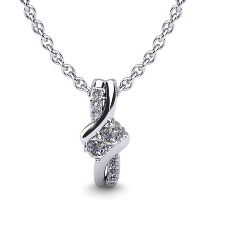 1/4 Carat Natural Two Stone Two Diamond Knot Necklace In 14K White Gold
