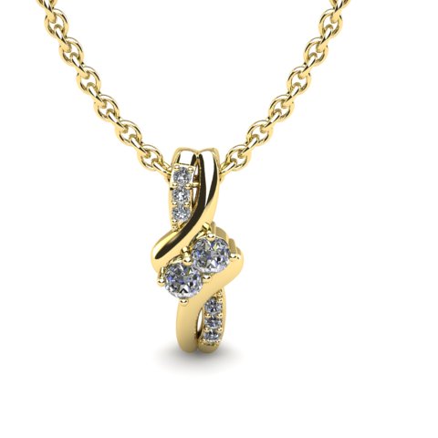 1/4 Carat Natural Two Stone Two Diamond Knot Necklace In 14K Yellow Gold