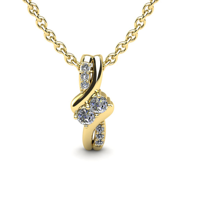 1/4 Carat Natural Two Stone Two Diamond Knot Necklace In 14K Yellow Gold