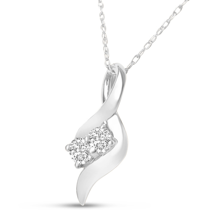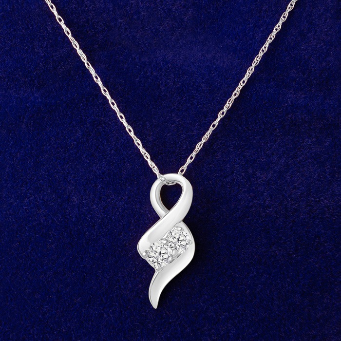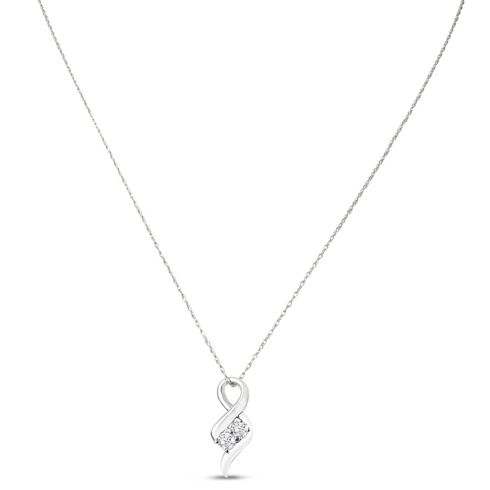 1/4 Carat Natural Two Stone Two Diamond Intertwined Necklace In 14K White Gold