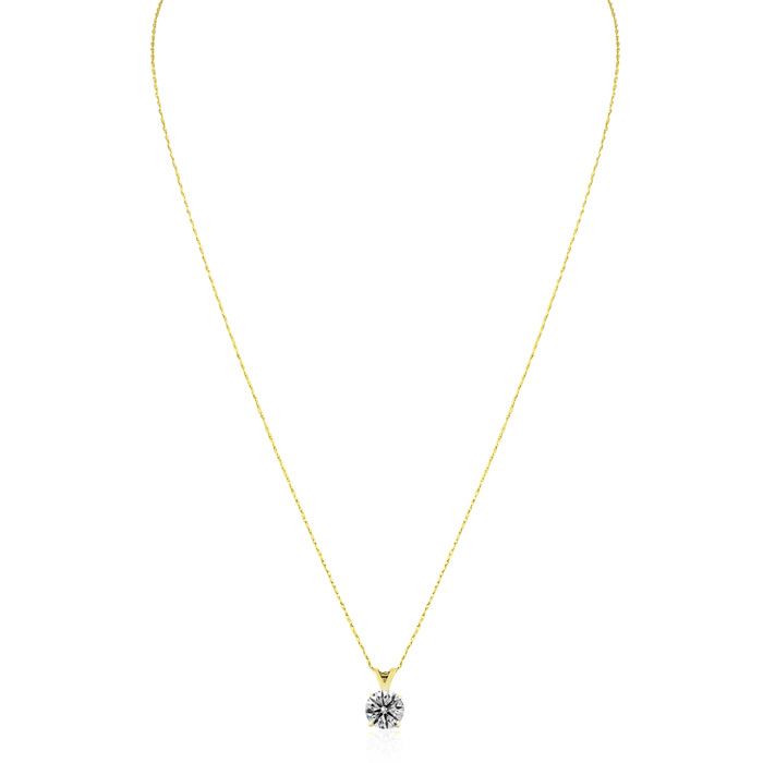 Our Most Affordable 1ct Yellow Gold Round Clarity Enhanced Diamond Solitaire Pendant. The diamond is J/K/L Color, I2/I3 clarity, which show a little color and are bright and sparkly. It even comes with a complementary 18-inch chain. You will not believe this Diamond Solitaire Necklace at a crazy low price! Get this deal!!