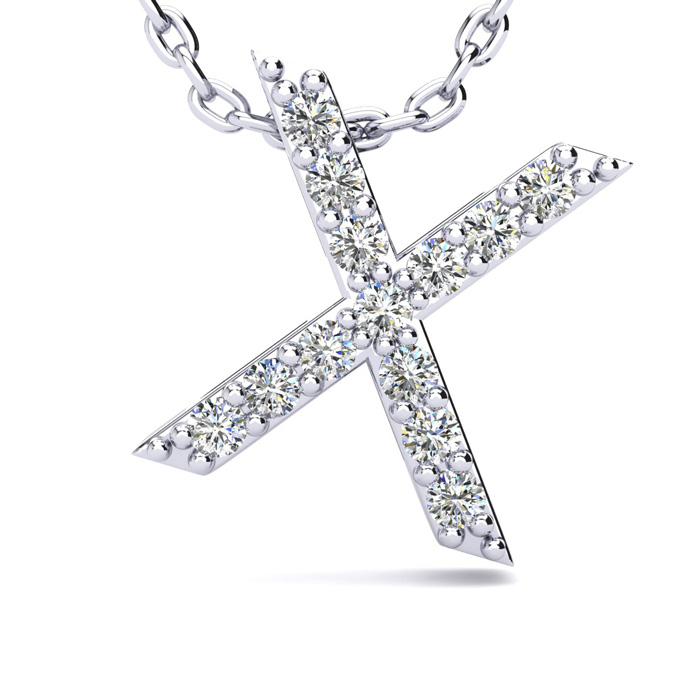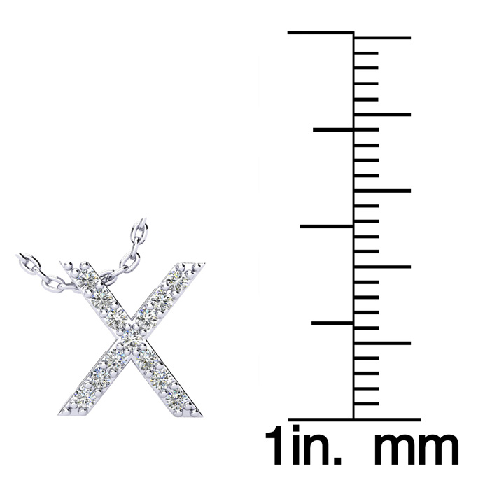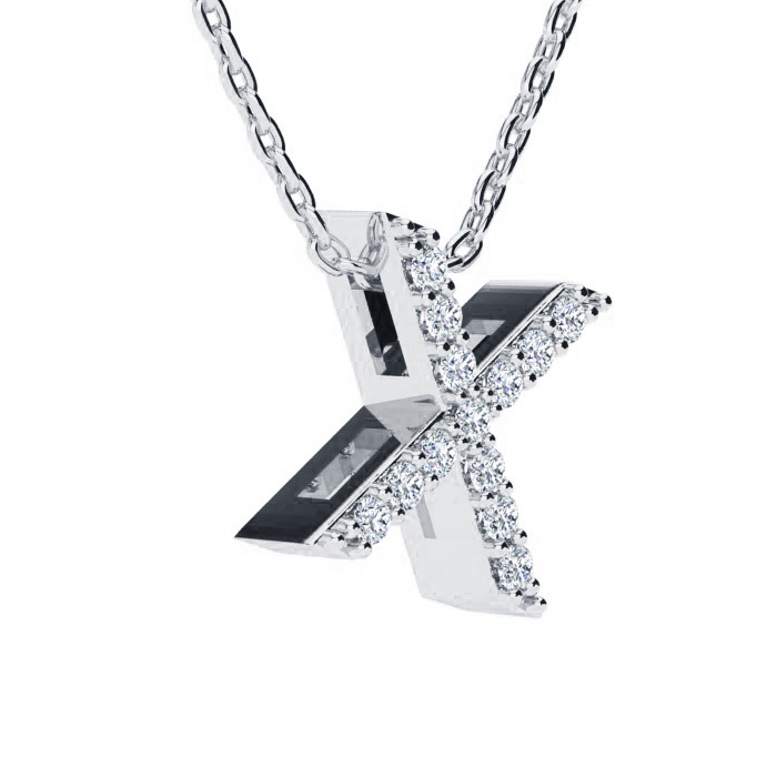 X Initial Necklace In Sterling Silver With Real Diamonds, With Free 18 Inch Chain
