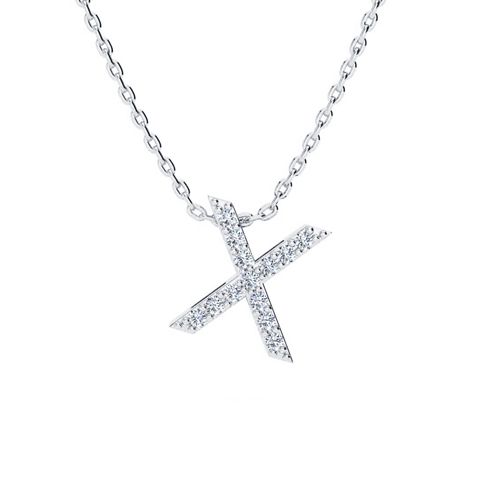 X Initial Necklace In Sterling Silver With Real Diamonds, With Free 18 Inch Chain
