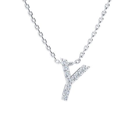Y Initial Necklace In Sterling Silver With Real Diamonds, With Free 18 Inch Chain